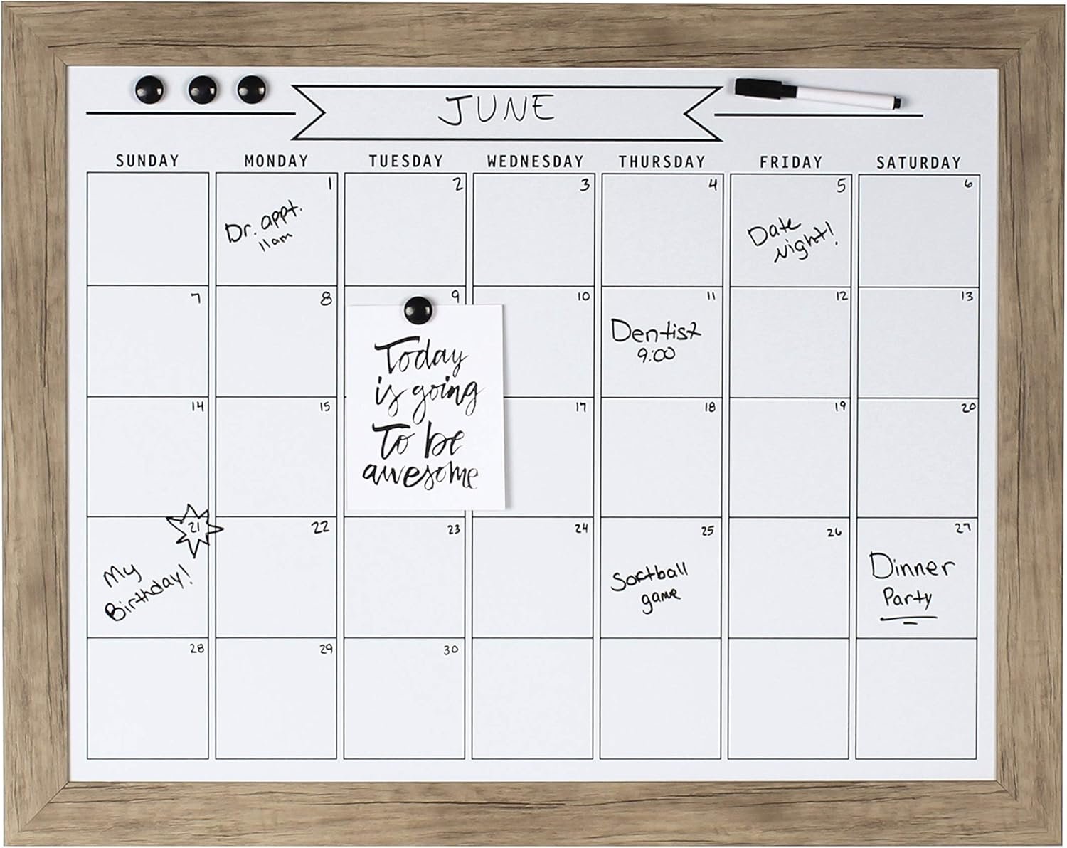 • Decorative framed magnetic dry erase monthly calendar for home or office organization