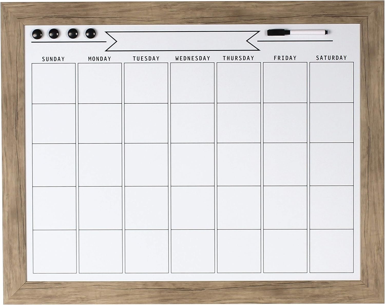 DesignOvation Beatrice Framed Magnetic Dry Erase Monthly Calendar, 23×29, Rustic Brown