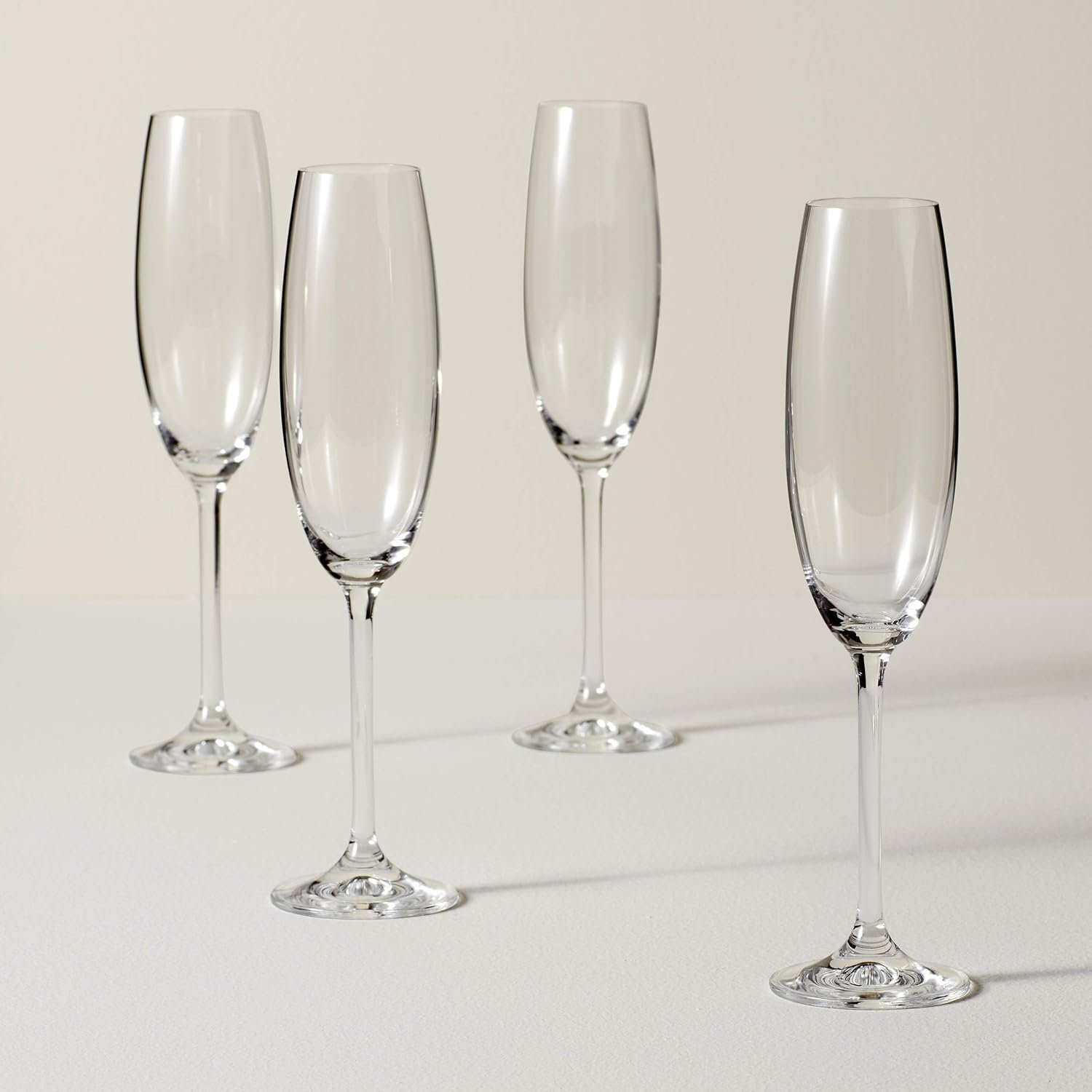 • Set of four fluted champagne glasses